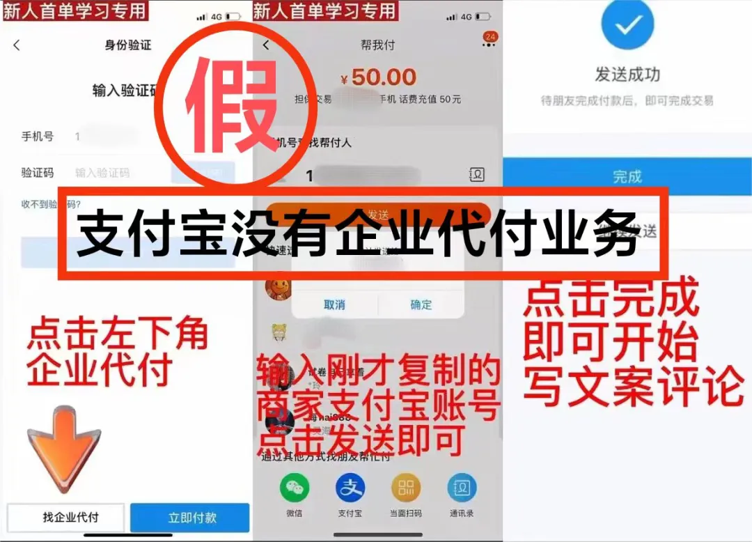 接下來(lái),在手機(jī)頁(yè)面中選擇“企業(yè)代付”,輸入相關(guān)信息即可完成刷單。